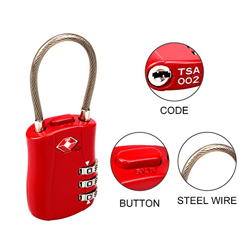 -. Feature : EASY TO USE: Own this 3 dial combination lock, you won't worry about losing the key, becuase the key is in your mind. the original combination is 0-0-0, press down the reset button to set your own combination, then release it, the setting it completed. / TSA APPROVED& & RELOCK: This locks are TSA and Travel Sentry Approved, if Transport Security Officers see the mark of TSA APPROVED on the lock, they will use corresponding key to open the it, if they want to remove the key, they must help you relock your bag or lage. / MULTIPLE USES: They can be used when travelling on your suitcase or backpack, or they can be used at home, in school, in the gym or on your tool box, computer bag or locker. / HIGH QUALITY: The body of each lock is made from a high strength zinc alloy and the cable is made from strong, cut resistant steel. The only way to open the lock is with the special TSA key or by knowing the combination. You can travel safe knowing your lage is protected.