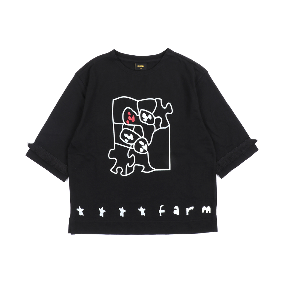 퍼즐처럼 마음의 '인상'들이 모여 뿌리깊은 나무를 만들어낸 듯한 나염 포인트를 준 티셔츠 입니다.