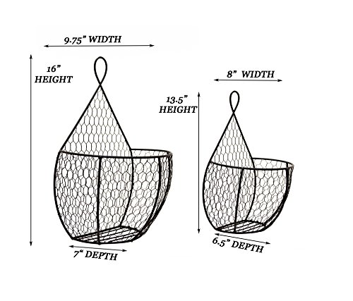 Useful UH-WB24 Double Hanging Display Storage Baskets - Pair of Wall Mount Baskets 1 Large 1 Small Wall Hanging Units for Flowers, Fruits and Veggies, Decorations, and More