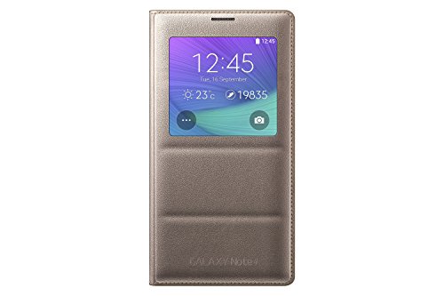 The Samsung S-View Flip Cover Case for Galaxy Note 4 protects your screen when it is not in use and is easily flipped open for full access to the screen. When closed, the S-View cover offers instant access to critical features, thanks to the Samsung ID chip. View the home screen to check the time, weather and other status items. Accept or reject incoming calls with just a swipe, or reject calls with a preset message. Control your music playback directly on the S-View screen. If you miss anything, notifications are shown in the recent activity menu of your S-View cover unless phone security settings are activated. Swipe left to quickly access your phone's camera without opening the cover to take pictures or video right in the moment.Feature