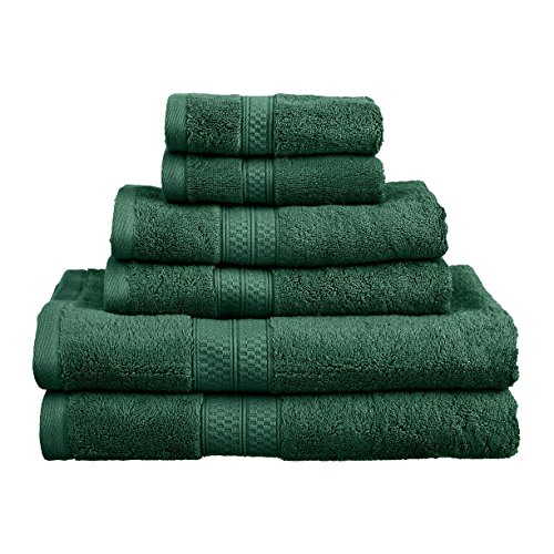 Superior Rayon from Bamboo and Cotton Bathroom Towels, Velvety Soft and Super Absorbent, Hotel & Spa Quality 6 Piece Towel Set with 2 Bath Towels, 2 Hand Towels, and 2 Washcloths - Hunter Green