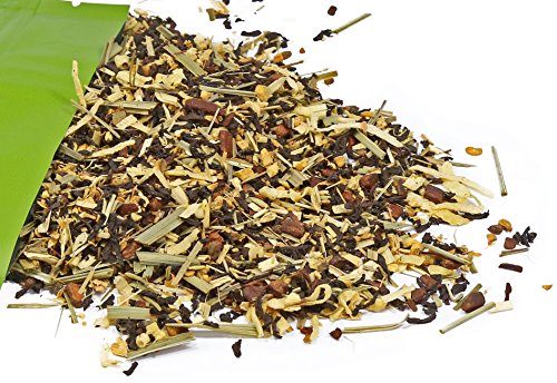 -. Feature : Here is a chai inspired by and dedicated to beautiful Thailand- a land full of amazing food, rich adventure, gorgeous flowers, beautiful people and the iconic "Thai Smile". / We have blended together classic chai spices with coconut and floral lemongrass to provide it with a 'touch of Thailand'. / Ingredients: black tea, cinnamon bark, ginger root, cardamom pods, lemon grass tea, dried coconut.