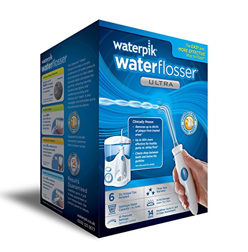 -. Binding : Badartikel -. Brand : Waterpik -. EAN : 0073950177436 -. Feature : Clinically proven to be up to 93 percent more effective than flossing / Now Powers from a UK Shaver Socket / Advanced control delivers a water pressure of 10 to 90 PSI with 1200 pulses per minute / Removes debris and bacteria lodged deep between teeth and below the gum-line / Includes six tips, classic jet tip, plaque seeker tip, tongue cleaner, an orthodontic tip and a Pik-Pocket tip -. IsAdultProduct : 0 -. Label : Waterpik International Inc. -. Manufacturer : Waterpik International Inc. -. Model : WP120UK -. MPN : WP120UK -. PackageQuantity : 1 -. PartNumber : WP120UK -. ProductGroup : Drogerie & Körperpflege -. ProductTypeName : PERSONAL_CARE_APPLIANCE -. Publisher : Waterpik International Inc. -. Studio : Waterpik International Inc. -. Title : Waterpik Ultra Water Flosser -. UPC : 073950177436
