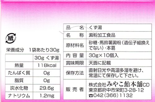 Per 30 g of 1: Energy 118 kcal, Protein 0 g, Lipid 0 g, Carbohydrate 29.6 g, Sodium 1.2 mg