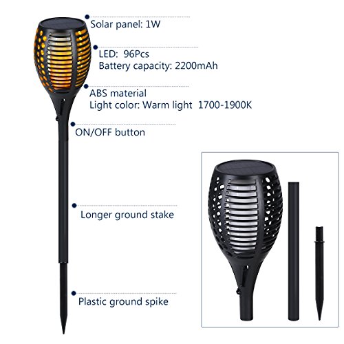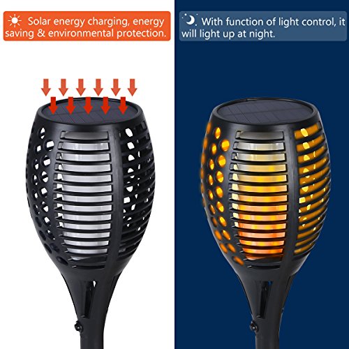 Solar Outdoor Torches Lights, YUNLIGHTS Dancing Flames Patio Torches Waterproof with 96 LED Dusk to Dawn Auto On/Off Décor for Garden Patio Deck Yard Driveway (2Pack)