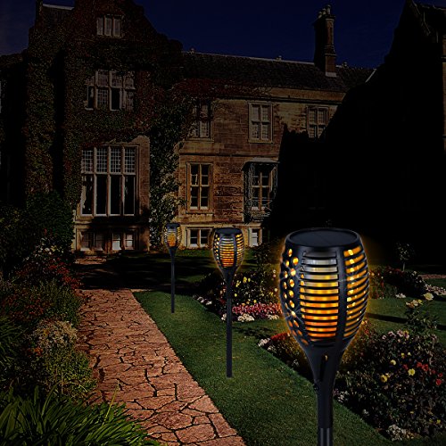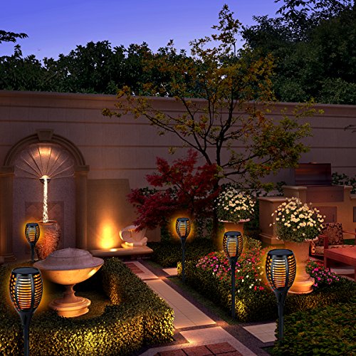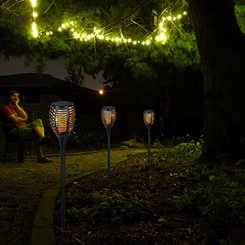 - BEAUTIFUL DECORATIVE OUTDOOR LIGHTS. These lights use 96 LEDs to simulate dancing, flickering flames like a Tiki torch. They give off a warm, romantic light.