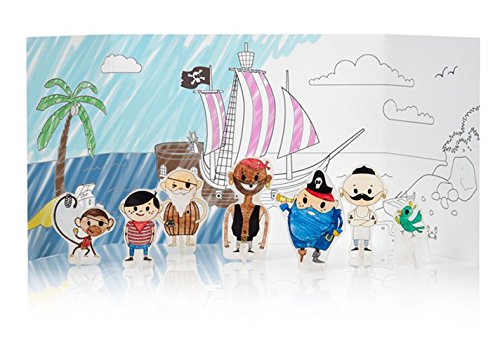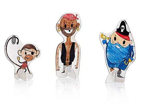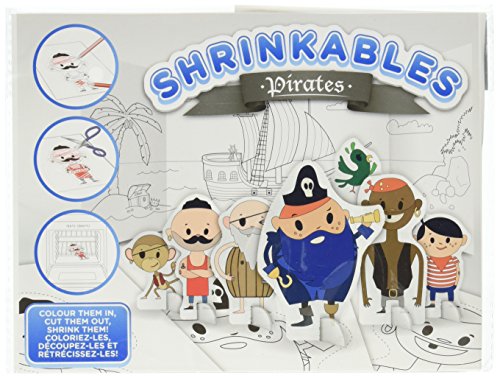 Color the pirate characters in with colored pencils, cut around the dotted lines then bake in the oven until they shrink! Each flexible coloring sheet will become a solid plastic pirate ready to display in the Pirate Island scenery. Contains 6 sheets.
