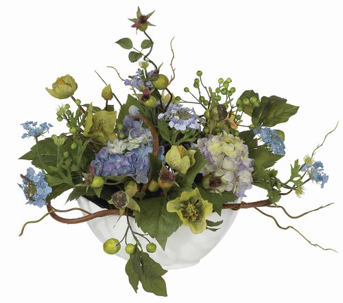 Nearly Natural 4622-BL Hydrangea Decorative Centerpiece, Blue