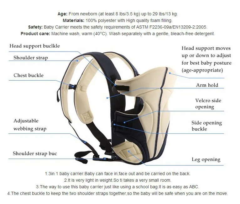Carriers Type:Front Facing,Back Carry,Face-to-Face,Horizontal,Front Carry