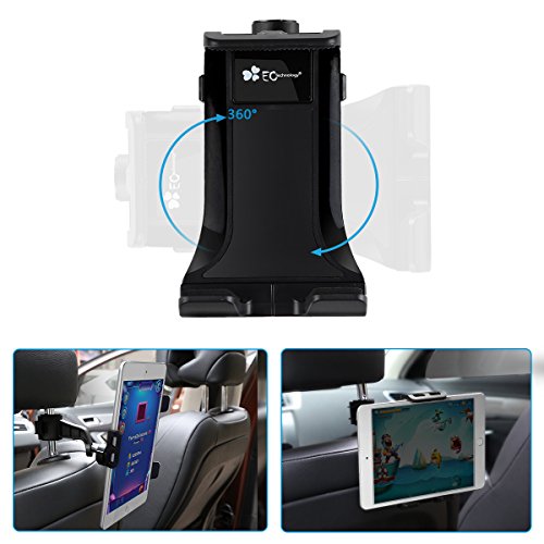 Tablet Mount, EC Technology iPad Headrest Mount 360° Degree Adjustable Rotating Headrest Car Seat Mount Holder for iPad, Samsung, and 7" to 10" Tablets- Black