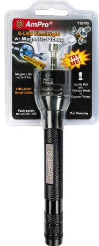 Ampro T19705 Black Half-Clamshell 6-LED Flashlight/Magnetic Pickup Tool