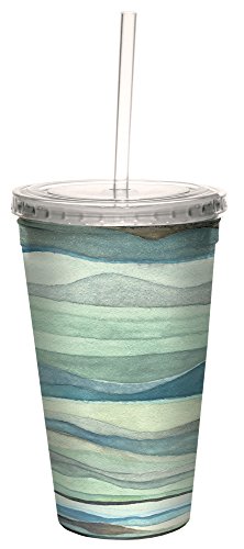 Tree-Free Greetings 35479 Shell Rummel Watercolor Waves Double-Walled Cool Cup with Reusable Straw, 16-Ounce