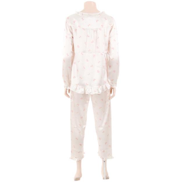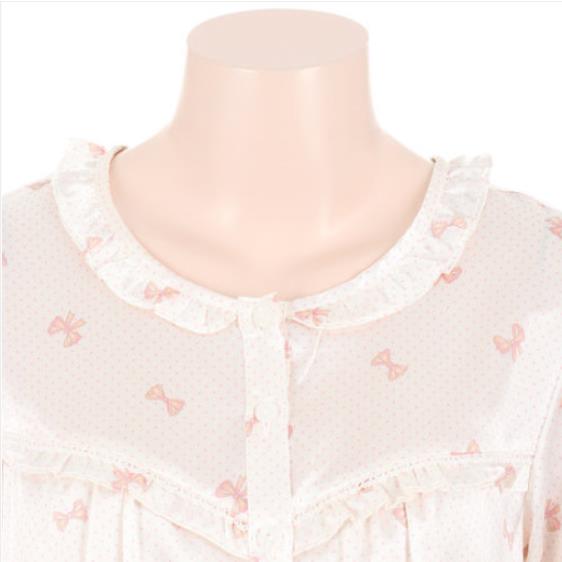 폴리 사틴 리본 무늬 패턴의 러블리한 여성 잠옷 입니다.귀엽고 사랑스러운 패턴으로 인기가 좋고 터치감이 부드러운 제품 입니다.네크라인과 가슴에 프릴로 여성스럽고 사랑스러운 느낌을 줍니다.전 연령층 착용이 가능하고 은은하게 광택이 있어 선물용으로 추천해 드립니다.커플 세트 남성 잠옷 MP8585A 별도 구매 가능 합니다.