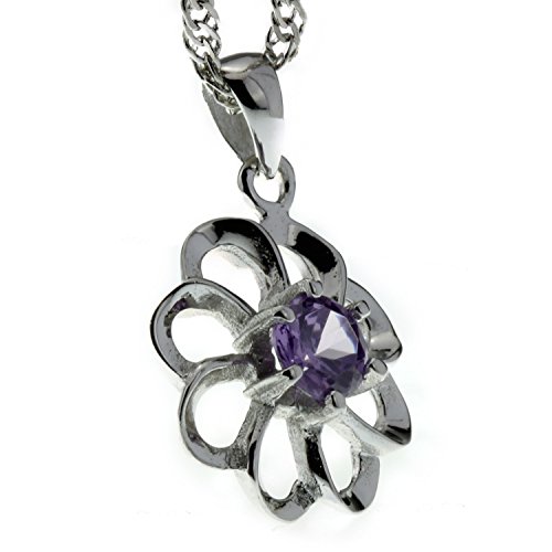 -. Title : Premium Silver Flower Purple Lab-Created Amethyst [Sterling Collection] Pendant Necklace