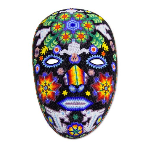 NOVICA Decorative Huichol Beaded Papier Mache Mask, Multicolor, 'Marra Rrurabe'
