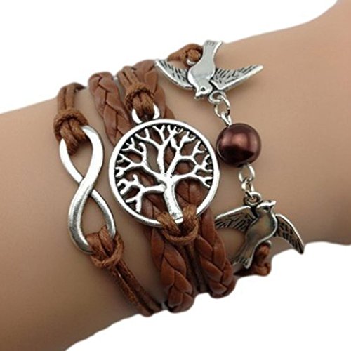 -. Title : Susenstone Handmade Adjustable Tree For Life Pigeon Multilayer Bracelet
