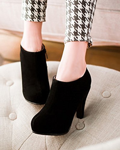 Binding : Apparel Product Description This pair of shoes is for women, girls, juniors and young ladies. You will look fashion and casual when wearing them. The heels measure 3.9 inches. You will look slimmer and slender in their high heels. The pair of shoes features ankle high and solid upper. The design of round toe will make you look sweet. You will look chic in their zip up closure and faux suede martin materials. They are available in black, apricot and blue color. We will provide you with the best quality at the lowest price. Come on and take them away! Please trust us, you are worth it! 0