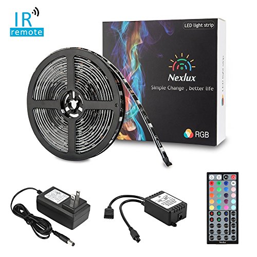 Nexlux Waterproof Led Strip Lights 16.4ft LED Light Strip 5050 SMD RGB LED Flexible Strip Light Black PCB Board Color Changing Decoration Lighting 44 key IR Remote Controller UL Power Adapter