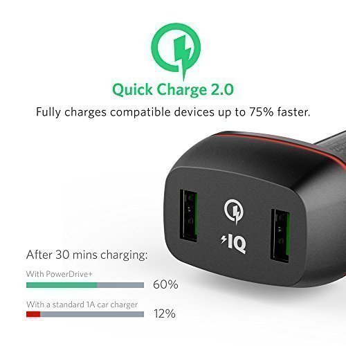 Qualcomm Quick Charge 2.0: PowerDrive+ 2 is powered by some of the world's most advanced charging technology. Quick Charge 2.0 in both ports allows compatible devices to charge 75% faster, providing up to 8 hours' use from just 15 minutes of charging!