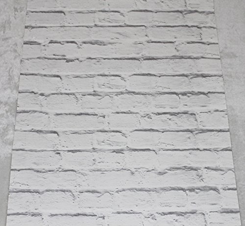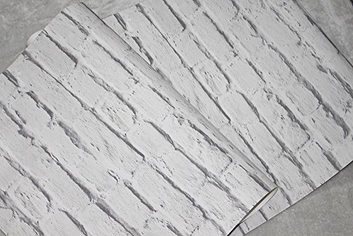 -. Title : HaokHome 11501 Modern Faux Painted Brushed Brick Wallpaper White Grey Wall Paper Roll 3D Brick Stone Home Room Decoration 20.8" x 393.7"