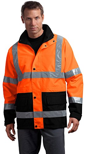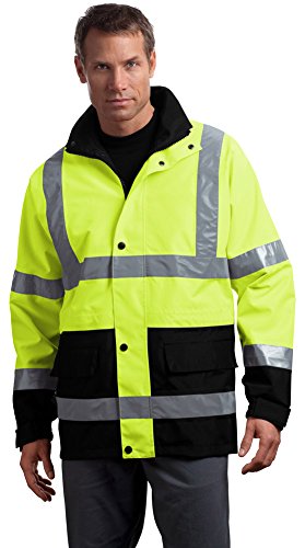 Binding : Apparel Product Description This seam-sealed parka locks out moisture while helping ensure your safety. | ANSI/ISEA 107 Class 3 certified 100% polyester shell and lining 8000MM fabric waterproof rating Fully waterproof and seam-sealed Two-way Vislon zipper Hideaway hood Storm flap with snap closure 2-in. wide reflective taping on front, back and sleeves Half-elastic adjustable tab cuffs with hook and loop closures Two large lower pockets Drawcord waist and hem with toggle adjustability This garment must be fully zipped to be in compliance with ANSI/ISEA 107 standards 0