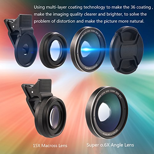 Ayzaw Cell Phone Camera Lens Professional with 15X Macro Lens 0.6X Super Wide Angle Lens Kit,Clip-on iPhone Lenses for iPhone 8/7/6/5/4s,Android/Samsung Galaxy and All Smartphones