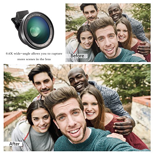 - ★ 0.6 X Super Wide Angle without Distortion:It can help largely expand the field of view and enable you capture the entire family or a whole team member into one picture.It is used for shooting scenes, scenery, humanities, architecture and so on.