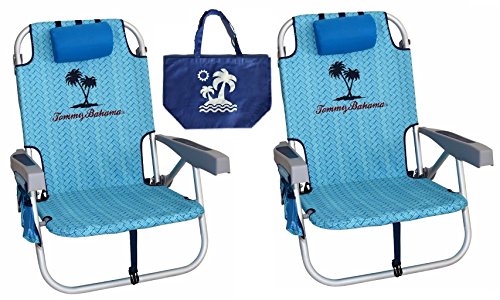 2 Tommy Bahama Backpack Beach Chairs/ Light Blue + 1 Medium Tote Bag