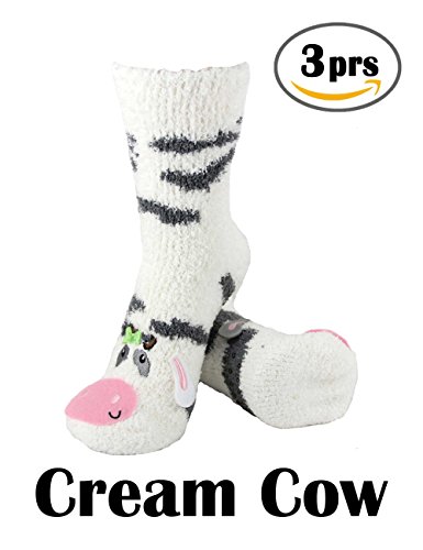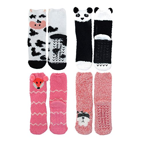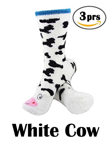 FUZZY ANIMAL CREW SOCKS 8 Pairs of Super Soft Warm Animal Cuff Non-slip Crew Winter Socks