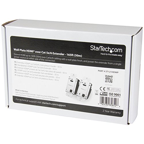 StarTech.com ST121HDWP Wall Plate HDMI Over CAT5 Extender with Power Over Cable with Audio Video Extender Kit - 1080p - 165-Feet