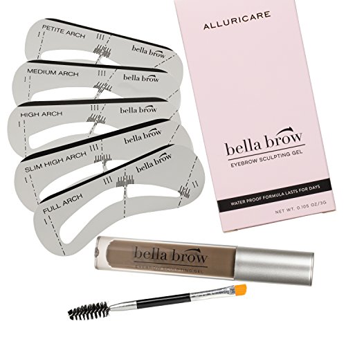 Natural Eyebrow Gel Sculpting Duo Volumizing Fiber Gel with Dual Edge Precision Spoolie Brush Applicator and Shaper Stencils - Waterproof and Smear...