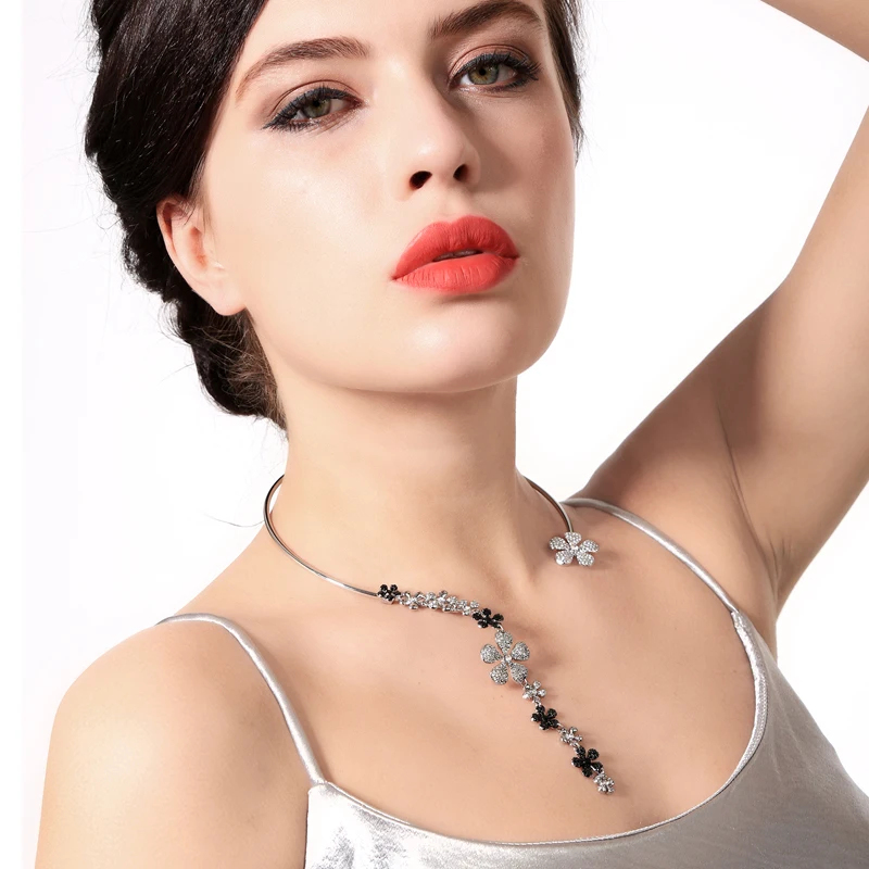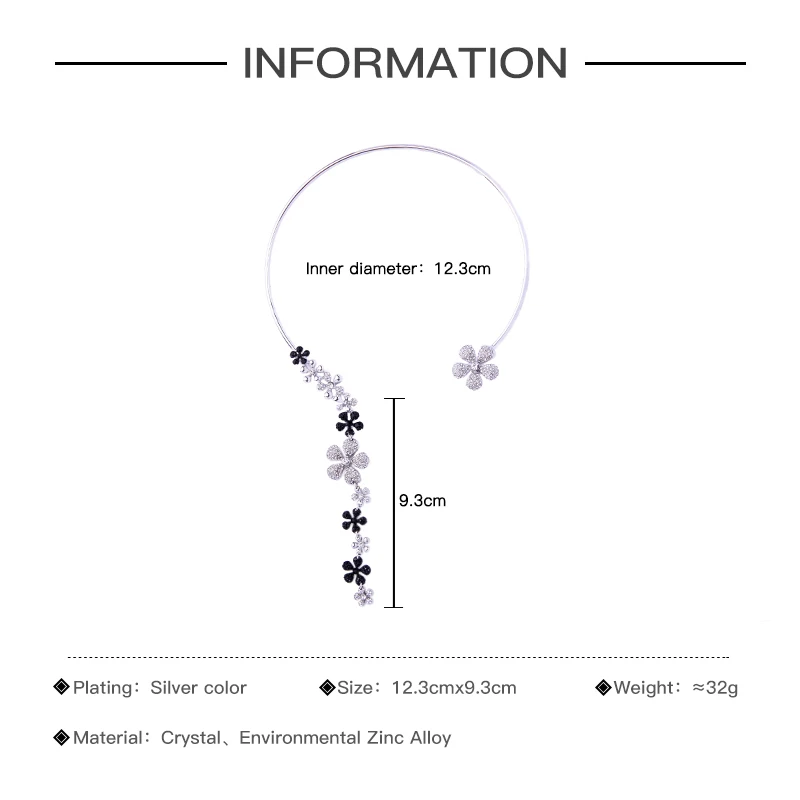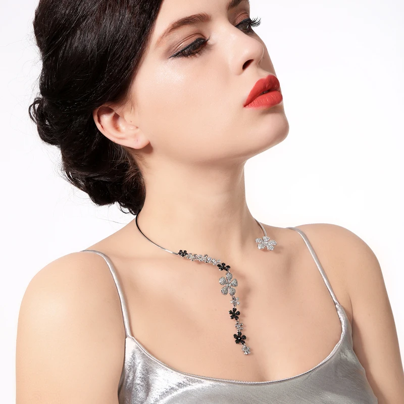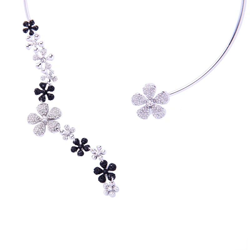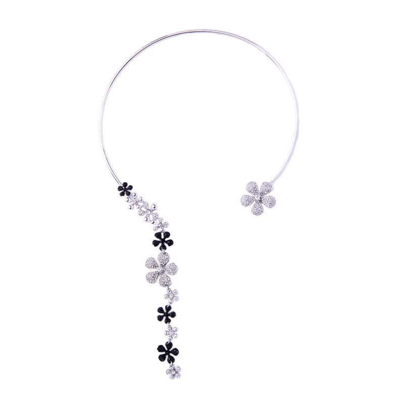 Production Feature:2018 Cute Romantic Tassel Crystal Flower Torques Necklace