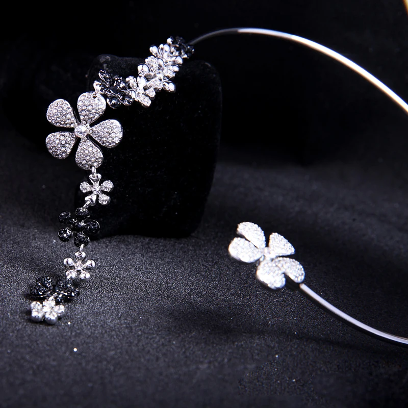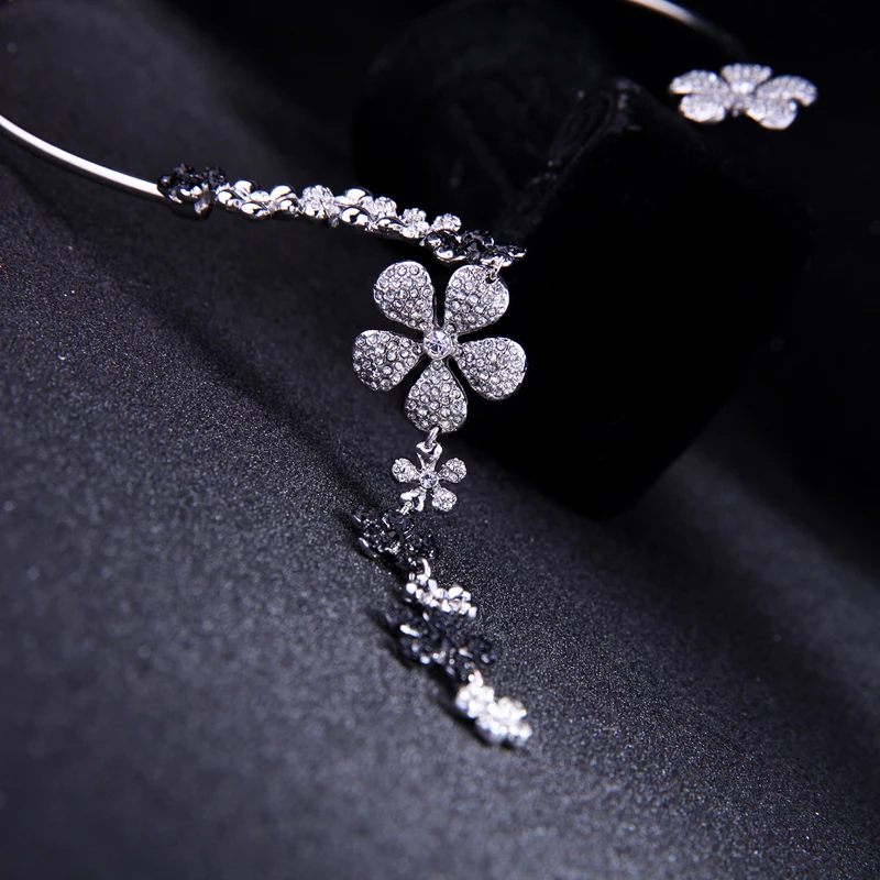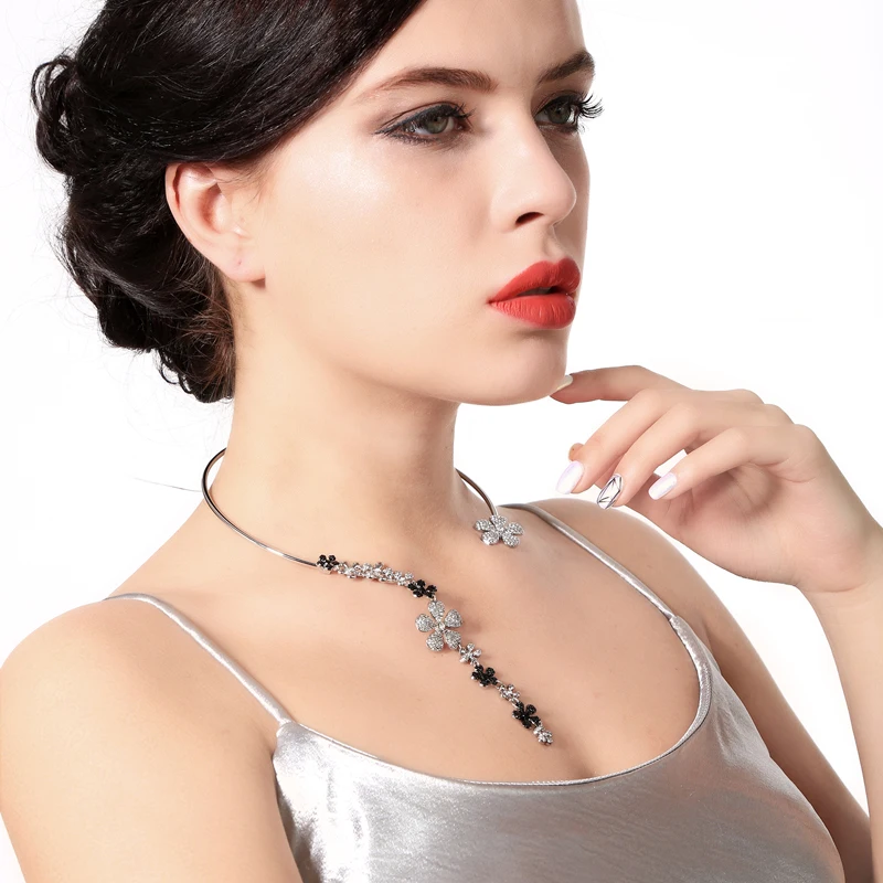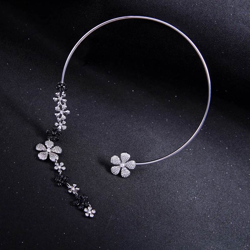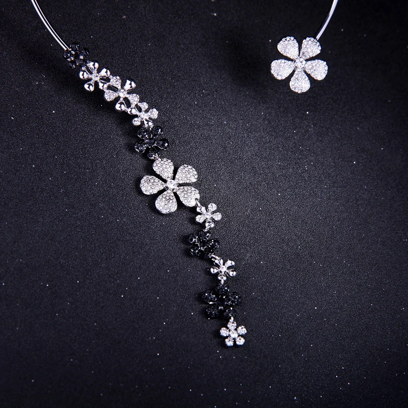 Production Feature:2018 Cute Romantic Tassel Crystal Flower Torques Necklace