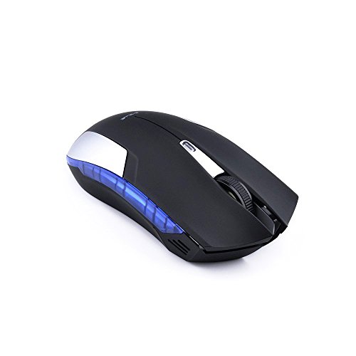- Feature : Black with inlaid silver plating soft-touch shell with distinctive blue LED design / Adjustable DPI (Dots Per Inch) switch 500 / 1000 / 1800 / Avago high-performance optical navigation gaming sensor / 2.4G Wireless transmission technology (30 ft. radius) / High FPS rate for extremely precise tracking level / Requires 2xAAA batteries (Not included) / OMRON Micro Switch provides lifespan of up to 5 million button clicks