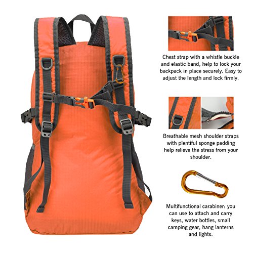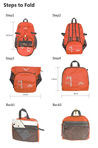 COMPACT. Folds into zipped inner pocket to fit anywhere, and unfolds from pocket to backpack in seconds. Free Multifunctional carabiner gift: you can use to attach and carry keys, water bottles, small camping gear, hang lanterns and lights. Very durable and great for hiking, camping and even kayaking.A must have for every trip.This is also a perfect gift for back to school,It is suitable for girls boys and students.Warranty: Our Promise-lifetime warranty-Exchange, return, whatever it takes.