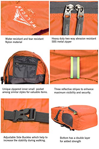 DURABLE. This WALUCAN Backpack is made with high quality tear and water resistant material, provides extra strength and long-lasting performance with the lightest weight possible. The extra strength provided by the double-layer bottom piece makes it very convenient to carry more load on your journeys. Heavy duty two-way SBS metal zippers across the backpack are convenient to operation on whichever side you prefer. Longevity is further enhanced by bar-tacks at major stress points.