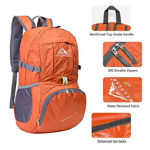 LIGHTWEIGHT(0.7LB) and ROOMY(35Liters).A true space saver. Fold the backpack into its own pocket for storage(no more excess baggage fees),and unfold it when you reach your destination. To avoid overweight charge, simply unfold from your checked bags and use it as a carry on for your excess baggage.
