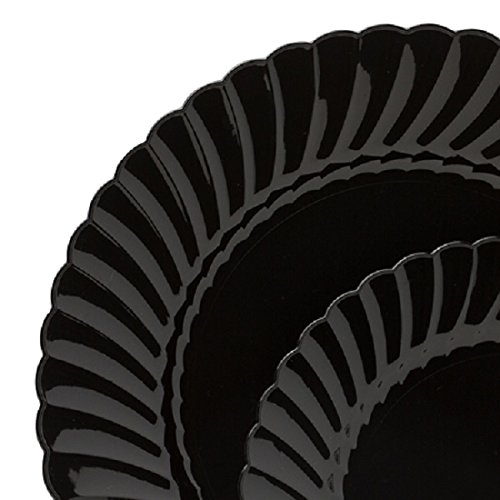 Table To Go 'I Can't Believe Its Plastic' 7.5" Salad Plates, 50 Pieces, Collection - Scallops, Color - Black