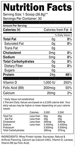 -. Feature : 100% Premium Whey Protein Isolate - Build Lean Mass Without Getting Bulky / 24 Grams of Whey Protein Isolate Per Serving / Low Calorie, ZERO Carbs, Fat Free, and 0% Sugar / Mixes Quickly, Fast Absorbing, Lactose-Free and Tastes Delicious / 6.35 Grams of BCAAs Per Serving - 100% Satisfaction Guaranteed!
