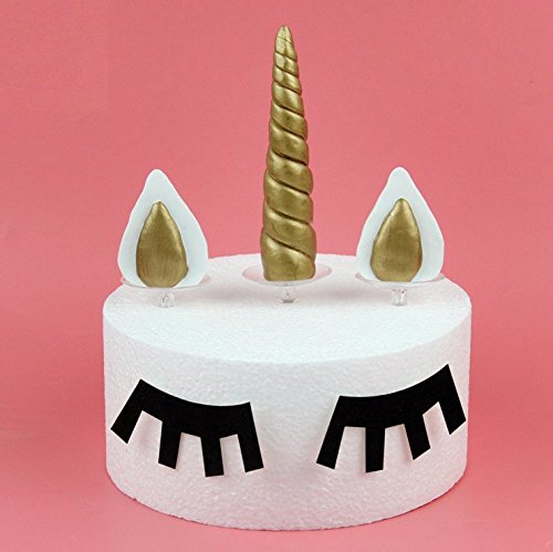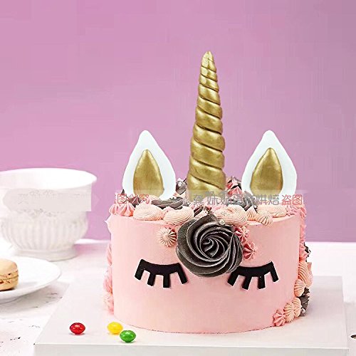Cake topper kit includes:Unicorn Horn, 2 Ears and 2 Eyelash, Ideal for an 8 to 10 inch cake to celebrate a your child's unicorn birthday!