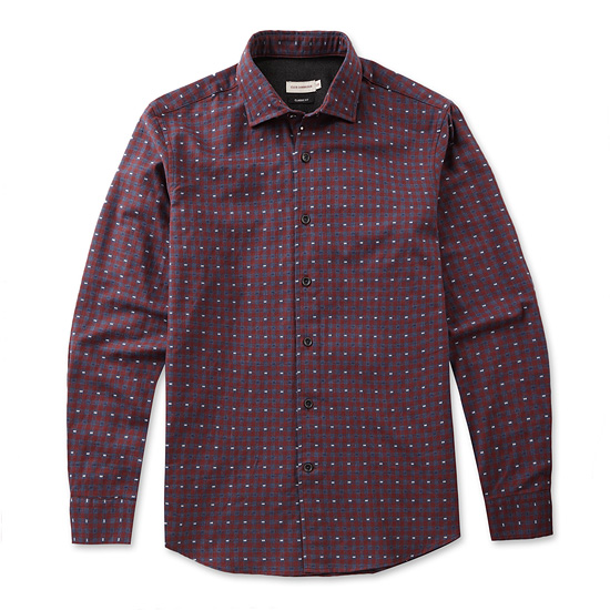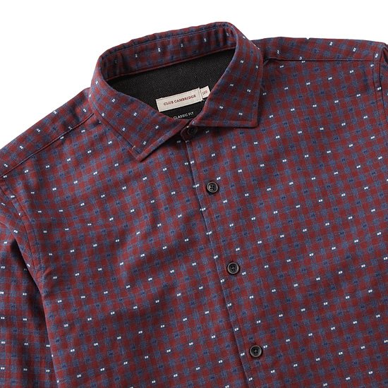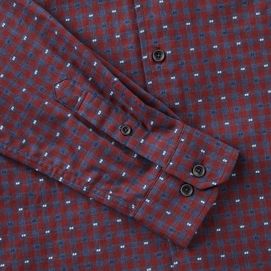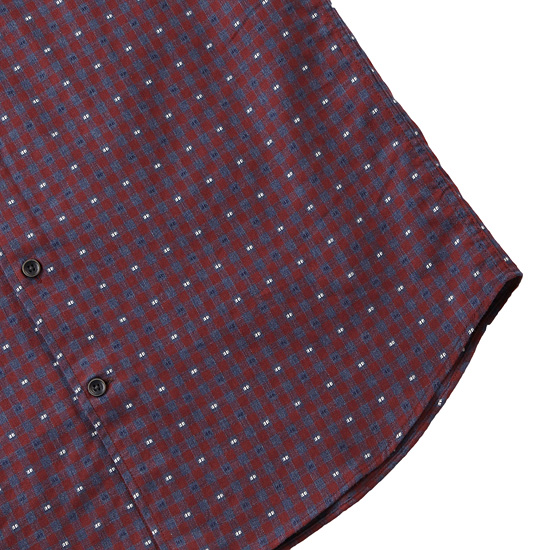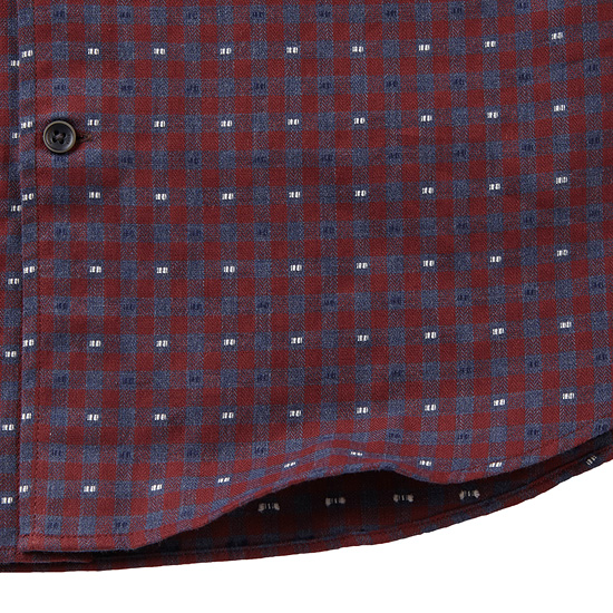 - 깅엄체크 원단에 스티치 기법으로 멀티 패턴 포인트를 준 셔츠.