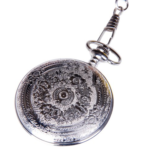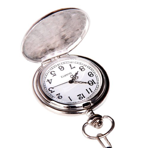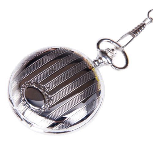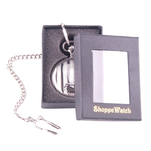 -. Feature : Full Hunter Silver Pocket Watch with Chain / ShoppeWatch Brand with Gift Box / Metal Chain Length 365mm (14 inches) / Perfect Steampunk Cosplay Fob Watch Accessory / Reloj de Bolsillo
