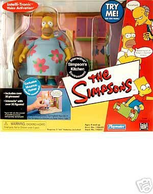 -. Binding : Toy -. Brand : Playmates/The Simpsons -. EAN : 0029000070370 -. Feature : Playmates - The Simpsons - World of Springfield Interactive Environment (Playset) - Simpsons Kitchen w/exclusive Muumuu Homer figure and custom accessories. / Discontinued and out-of-production. Age deterioration/leakage of factory installed batteries might be possible! -. IsAdultProduct : 0 -. Label : Playmates Toys, Inc. -. LegalDisclaimer : Not recommended for users under four (4) years of age! Discontinued and out-of-production with factory installed batteries. Item is subject to possible age deterioration/depletion/leakage of factory installed batteries! -. Manufacturer : Playmates Toys, Inc. -. MPN : 140681 -. PartNumber : 140681 -. ProductGroup : Toy -. ProductTypeName : TOYS_AND_GAMES -. Publisher : Playmates Toys, Inc. -. Studio : Playmates Toys, Inc. -. Title : Simpsons Series 6 Kitchen Playset Muumuu Homer Figure -. UPC : 029000070370