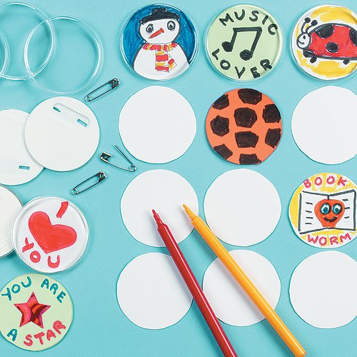 -. Binding : Toy -. Brand : Baker Ross -. EAN : 5051174007376 -. Feature : Children will love making and wearing their own badges. / 10 see-through badge holders per pack for designs of their own. / Also includes 20 blank discs. / 2.2ins. diameter. -. Label : Baker Ross -. Manufacturer : Baker Ross -. MPN : na -. PackageQuantity : 10 -. PartNumber : na -. ProductGroup : Toy -. ProductTypeName : TOYS_AND_GAMES -. Publisher : Baker Ross -. Studio : Baker Ross -. Title : Design a Badge Kit 55mm Clear Plastic Badge with Blank Paper Inserts for Children to Personalise (Pack of 10)