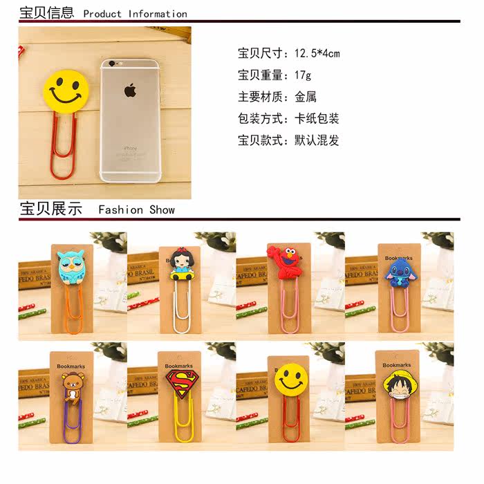 卡通硅胶书签金属书夹创意人物头像大号回形针学生学习文具用品