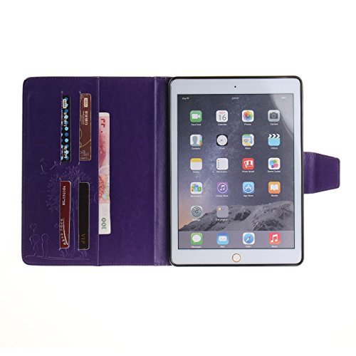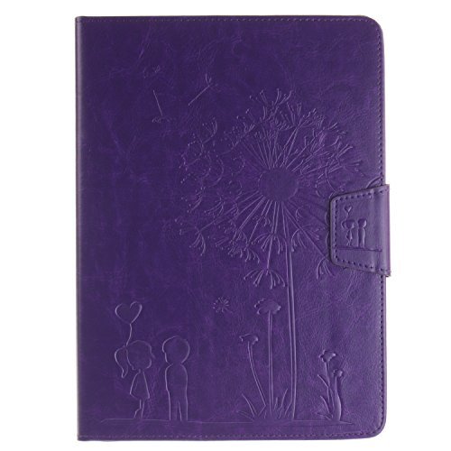 iPad Air 2 Case, iPad 6 Case, Dteck [Embossed Dandelion Series] Protective Synthetic Leather Flip Smart Stand Case with [Auto Sleep Wake] Card Slots Slim Fit Wallet Cover for Apple iPad Air 2(Purple)
