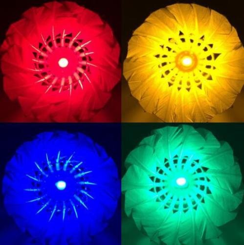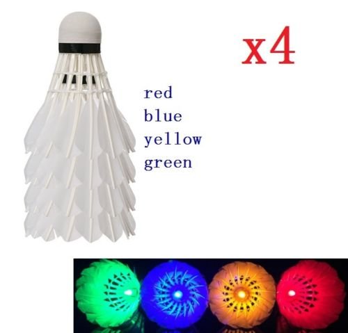 Product Description 4 color LED Glow in Dark Badminton Shuttlecock, Night Glow Birdies Lighting For Outdoor Specifications: Package Weight: 80g Package Includes: 1 x Red LED Shuttlecock 1 x Green LED Shuttlecock 1 x Blue LED Shuttlecock 1 x Yellow-LED Shuttlecock