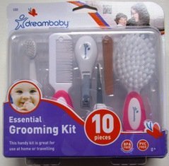 -. Binding : Baby Product -. Brand : Dreambaby -. Color : Pink -. EAN : 0878931003328 -. Feature : Dreambaby Hair Brush Soft and gentle on the scalp and with an easy grip toddler sized handle, a great first step to personal grooming Dreambaby Comb The non scratch, rounded teeth will help detangle hair without tears / Dreambaby Toothbrush The compact head and soft bristles ensure great oral hygiene for developing teeth; The easy grip handle encourages your toddler to learn correct brushing techniques with ease / Dreambaby Scissors With comfortable handles the scissors have a rounded tip for added safety -Sturdy plastic storage case ensures all babys grooming essentials are organized and hygienically stored / Dreambaby Emery boards are great to gently file away any sharp or jagged edges on little nails / Dreambaby Nail clippers Sized and curved for safer trimming of little finger and toe nails - Color: Pink -. IsAdultProduct : 0 -. Label : Dreambaby -. Manufacturer : Dreambaby -. MPN : EC-M443 -. PartNumber : EC-M443 -. ProductGroup : Baby Product -. ProductTypeName : BABY_PRODUCT -. Publisher : Dreambaby -. Size : 1 Kit -. Studio : Dreambaby -. Title : Dreambaby 10 Piece Essential Grooming Kit - Color: Pink -. UPC : 878931003328