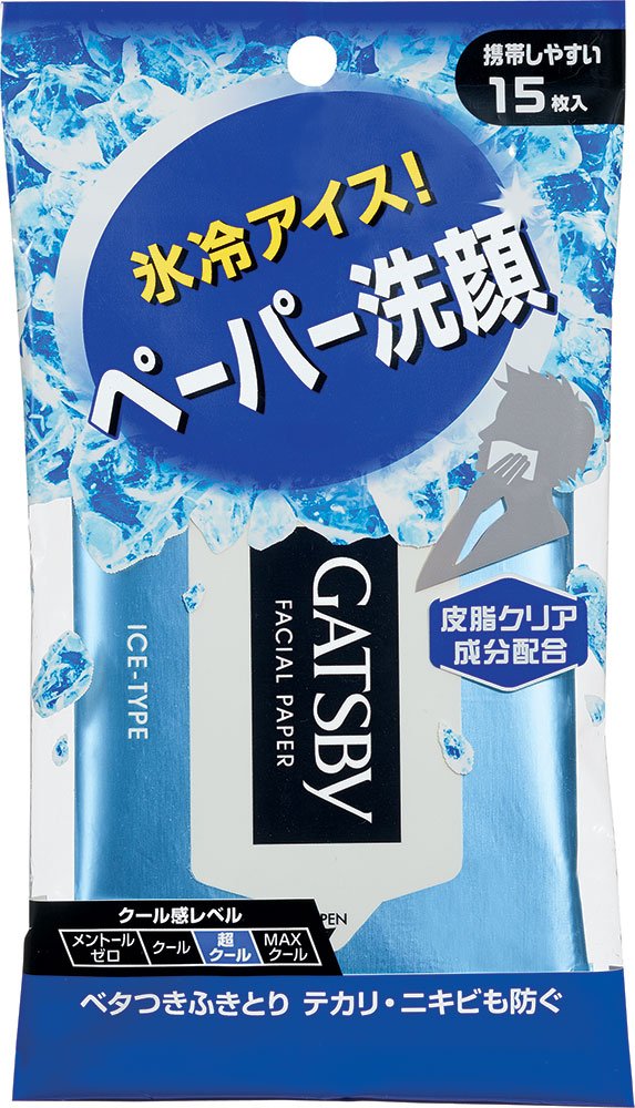 "Gatsby Facial Paper Ice Type 15 Sheets" is an ice-type face wash sheet that firmly wipes out the luster and dirt on the go.