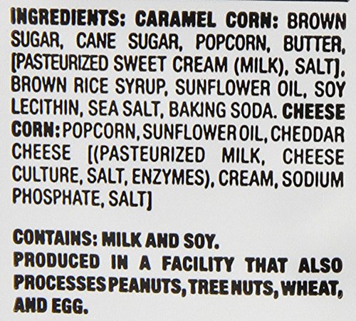 -. Feature : All Natural, sweet & salty popcorn (cheese corn caramel corn mix), Chicago mix. / Cane Sugar Caramel Cheddar Cheese / All Natural, Kosher, Gmo-free, no corn syrup / Popcorn Since 1885 / Made in USA